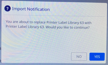 - Tap Yes on the LCD screen of the printer to upgrade the Printer Label Library files.