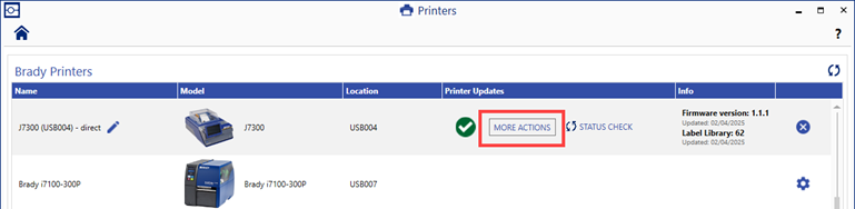 Printer Label Library can only be updated in Brady Workstation if the firmware on the printer is version 1.1 or later.