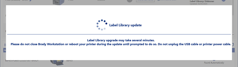 - Wait for the Printer Label Library file to upgrade. Do not unplug or turn off the printer.