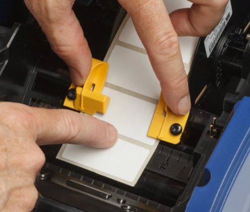 Ensure the yellow media guides are positioned according to the arrows on the guides. These guides contain a sensor that must see material notches to keep calibration. If these are too tight, the printer will have trouble feeding: i3300 - How to Load Labels and Ribbon.