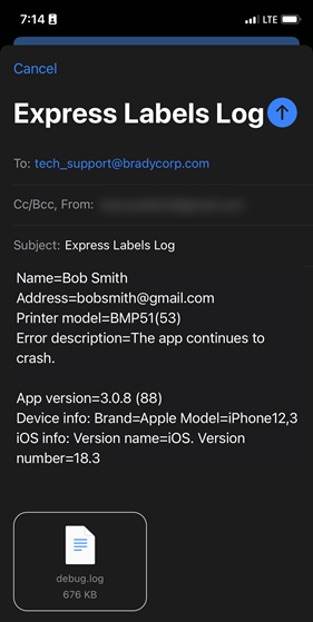- The email will open in your devices email app. Tap the Send icon to send the email to Tech Support.