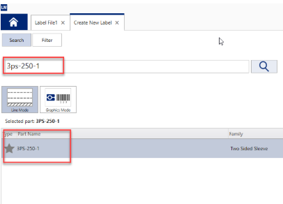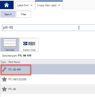 Note: If you see a similarly named part with a wrench icon as shown below, this indicates an old version of this part was imported when you first opened the old label file. LabelMark 6 will not recognize the old part as a stock part, and it will be be added as a custom part.