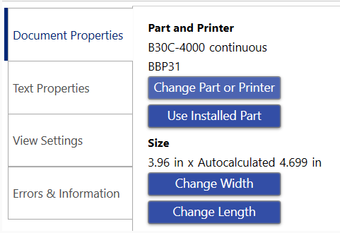 1. Open your old label file in LabelMark 6. Expand “File & Part Properties” from the left menu. Take note of the part name and dimensions.