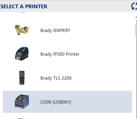 3. If you are printing over USB, make sure you select the i3300 with the USB number in brackets from the printer selection dropdown in Brady Workstation.