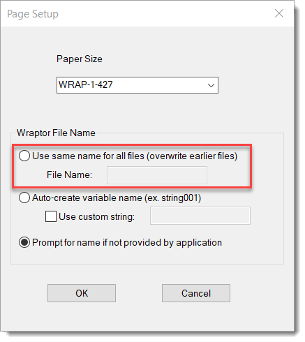 6. If you'd like to use one static file name for all labels sent to the Wraptor, click on the first radio button under "Wraptor File Name".