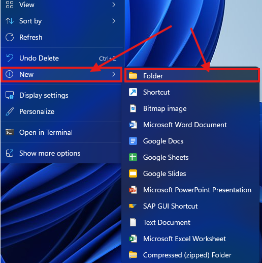 - To create a new folder on the desktop, right click anywhere in the open space on your desktop.