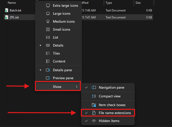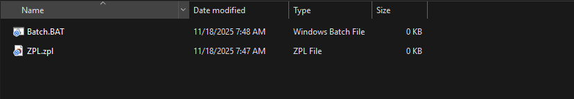 - Now we need to change the two text files we created to one ZPL file and one Batch file.