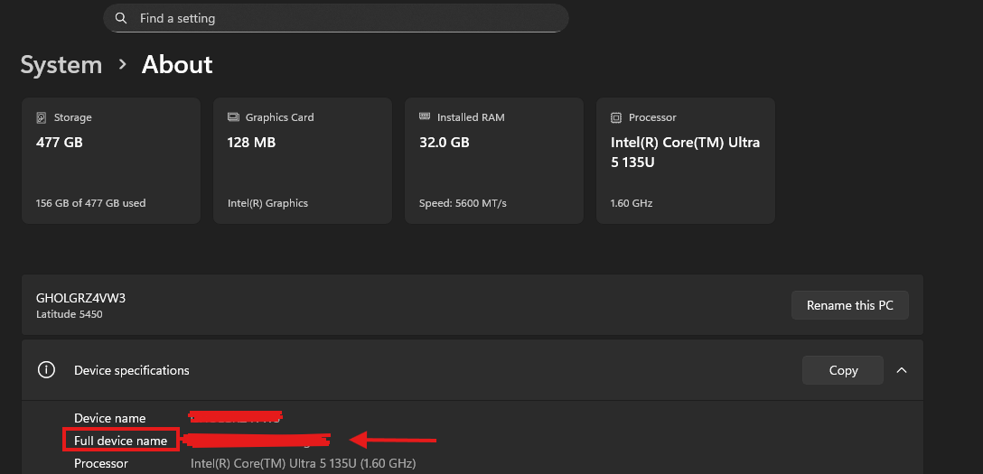 - Locate "Full Device Name".