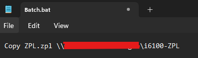 - Repeat these steps for the Batch file. The extension should be changed to ".BAT" instead of ".ZPL"