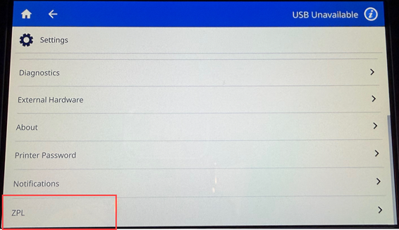 - Scroll down to ZPL on the bottom of the menu and select it.