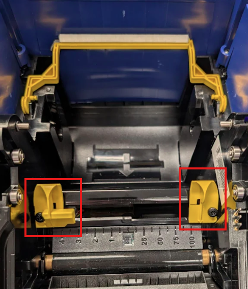 Slide the yellow media guides to open.