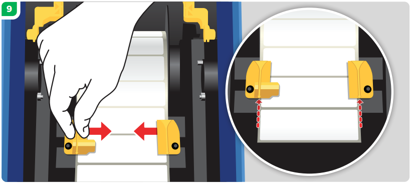 Close the media guides until they touch edge of liner with labels under the guides. The media guides should be snug against the media without bending the liner.