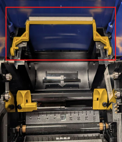 If the yellow supply wiper arm is down, flip to the back of the printer.