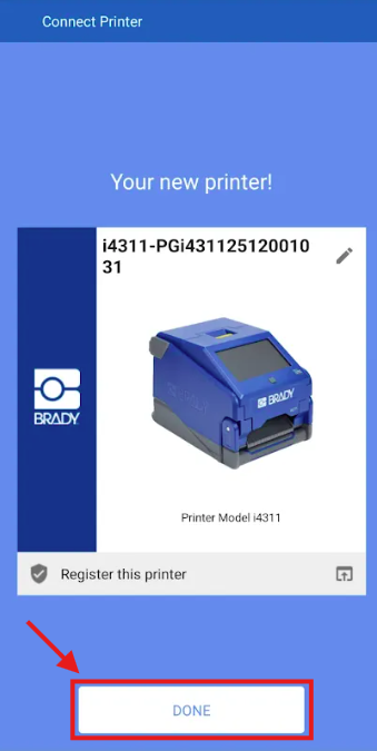 - Select Done after the connection between the printer and Express Labels Mobile app is established.