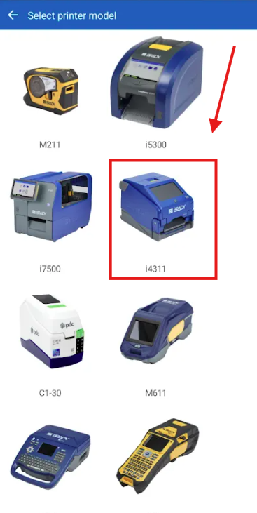 If you selected the yellow circle to manually add the printer, select the i4311 printer from the list of printer options.