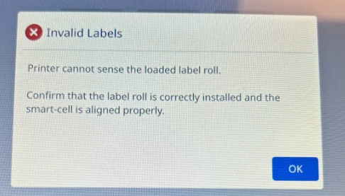 - Try another roll of labels, if available. There may be an issue with the smart-cell on the label roll.