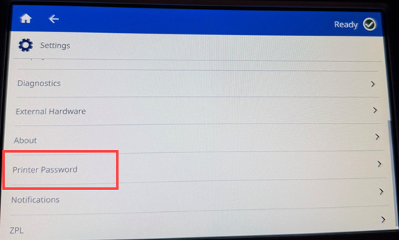 - Tap Printer Password.