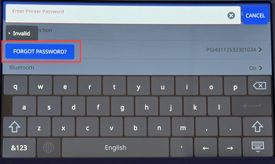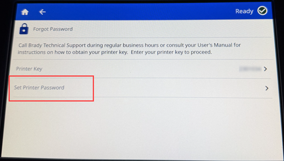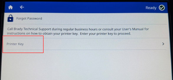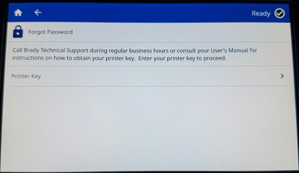 - Tap Printer Key. Technical Support will provide the Printer Key.