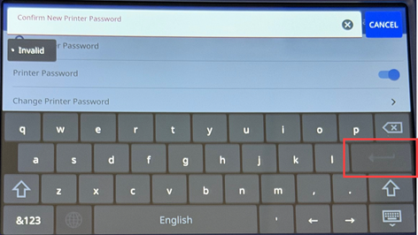 - Re-enter the password and tap the enter key.