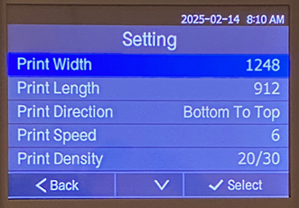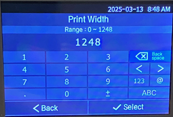 The Print Width default value is 1,248 dots. The maximum value is 1,248 dots.