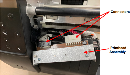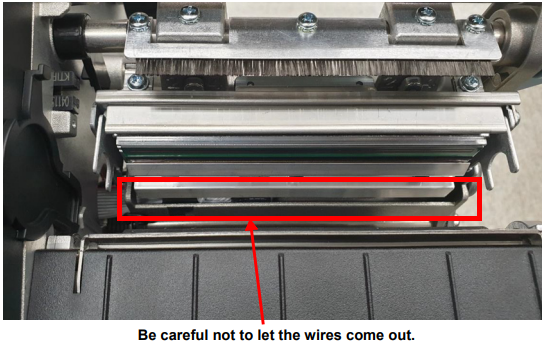 If using a thick label supply (0.26-0.3 mm), move the printhead toward the front of the printer, in the direction indicated below.
