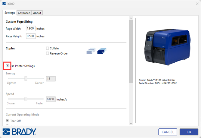 - The checkbox next to Use Printer Settings must be unchecked. If the checkbox is not unchecked, click in the box.