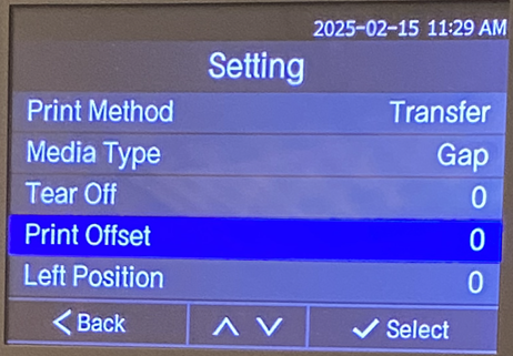 - Use the down arrow to highlight Print Offset.