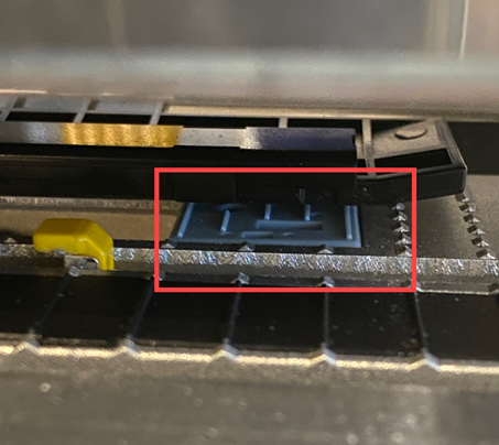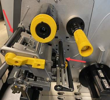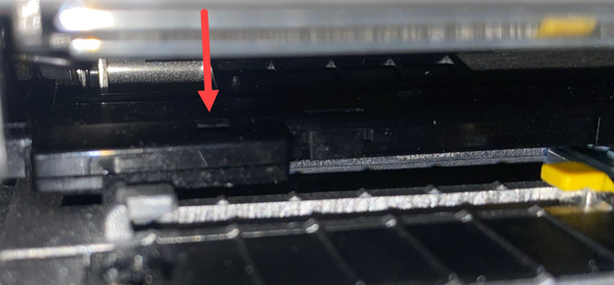 - Pull the yellow tab to the right if you are facing the front of the printer or towards you if you are facing the side of the printer.