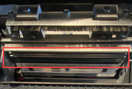 - Use compressed air to clean the ribbon sensor. The ribbon sensor is the square cut out on the left of the media holder.