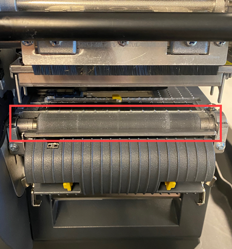 - Use the cleaning swab PCK-6 to clean the platen roller. Use your fingers to gently rotate the platen roller to clean the entire surface.