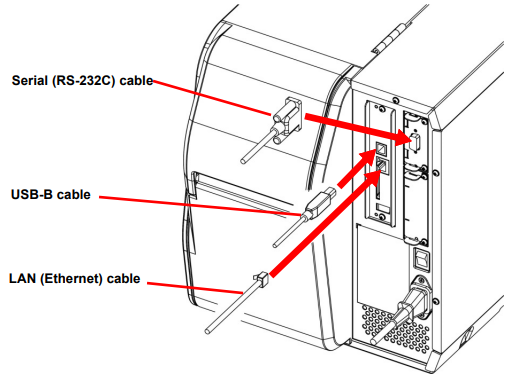- Connect the communication cable to the appropriate port of the printer.