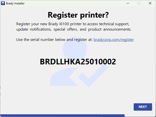 - Click the link to register the printer. Click Next.