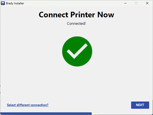 - Click Next when the screen displays Connected.