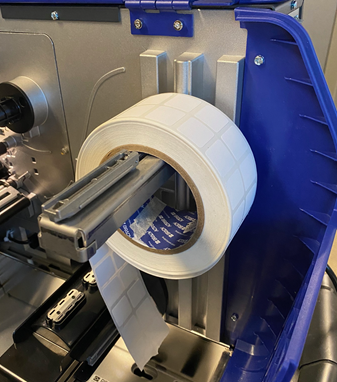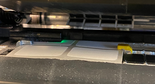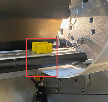 - Pull the labels under the black tab which is under the printhead.