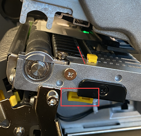 - Open the printhead by pushing up on the yellow lever.