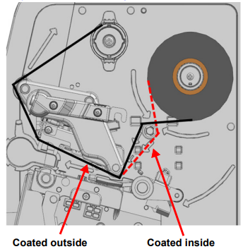 The ribbon can be coated on the inside or outside with the ink. The best way to determine which way the ink ribbon is coated is to take a label or piece of tape to the ribbon. If the black ribbon ink appears on the label or tape, this is the coated size.