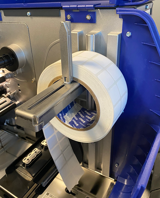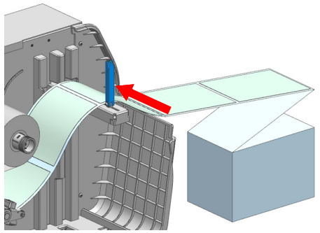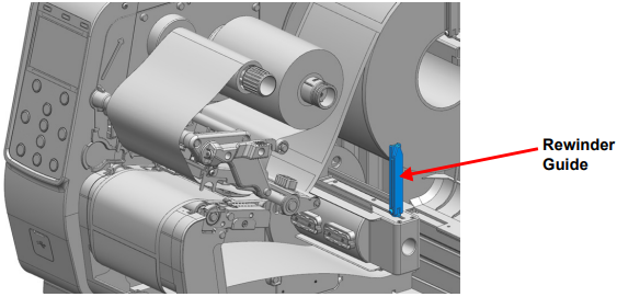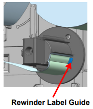 - After installing the labels as shown, secure the labels on the rewinder label guide.