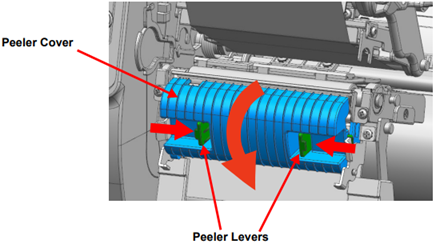 - Press the left and right peeler levers to open the peeler cover.