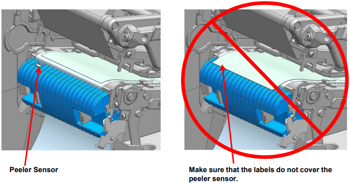 When the peeler is switched on, the next label will not be printed unless the previously printed label is removed from the peeler. When the peeler is switched off, the peeler does not work.