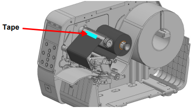 - Attach the ribbon to the ribbon take-up spindle using tape.