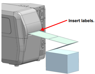 - Insert labels through the access slot on the back of the printer.