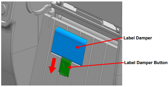 - Push the label damper button down to raise the media damper.