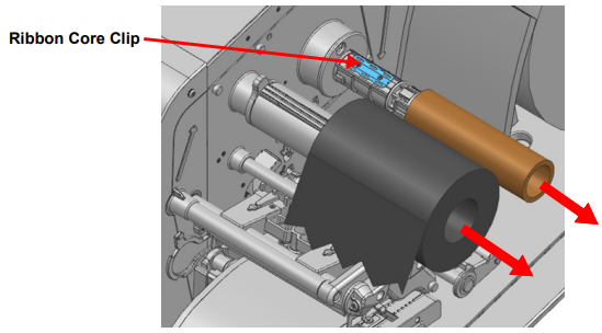 - When removing ribbon and ribbon core, be careful of the sharp end of the ribbon core clip.
