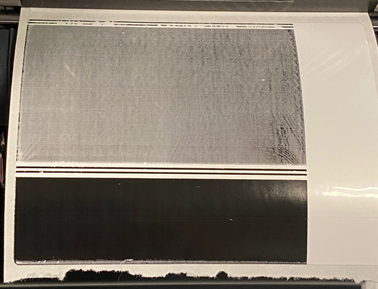 - The label(s) print. The label below is what it should look like. If there is a vertical line through the whole label, a pixel is burnt out on the print head and the printer may need to be repaired.