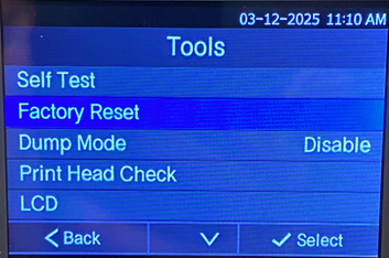 The Factory Reset will restore all printer settings to the factory default.