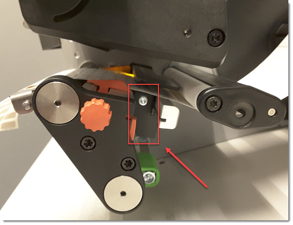 The sensor is indicated by an orange LED. This sensor is adjustable using a black tab accessible from the right side of the printer.