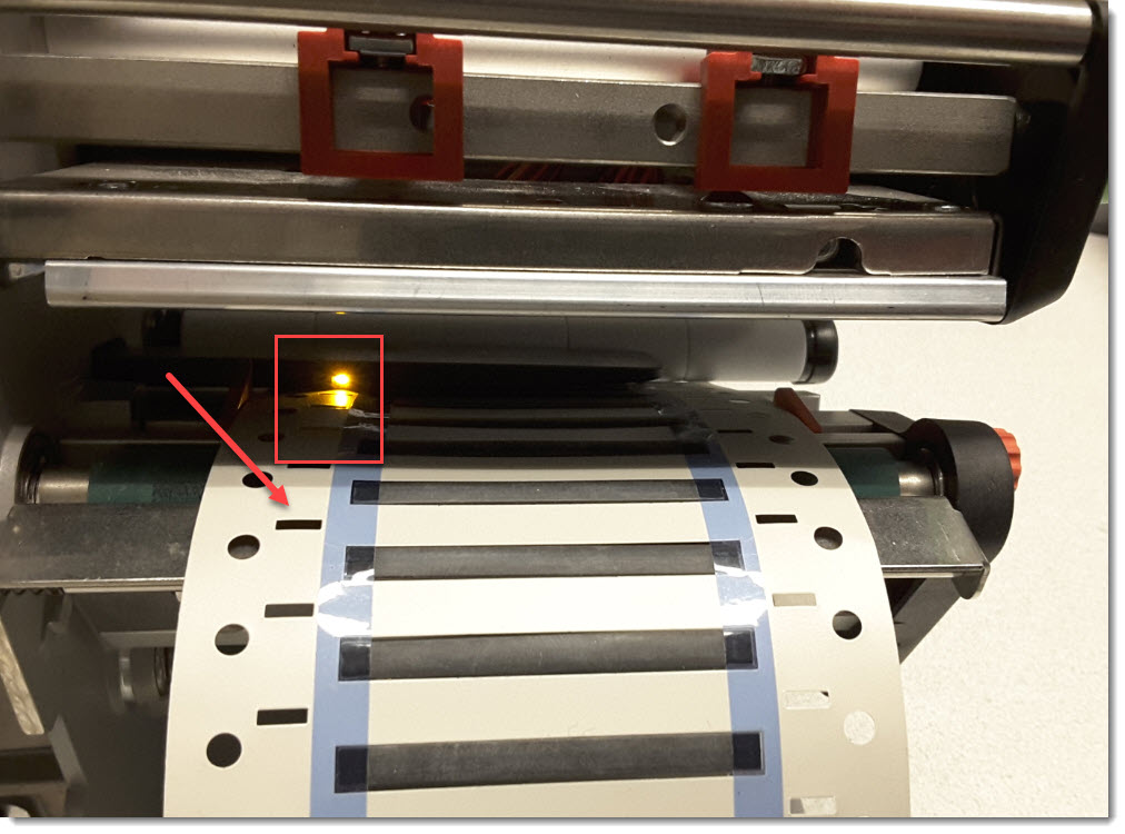Place the sensor so that it sees the notches on the left-hand side of the label liner.