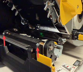 - Loosen, but do not remove, the two screws then lift up and slide out the serrated tear plate.