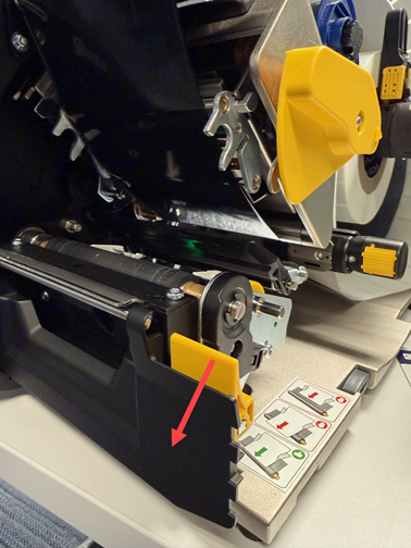 This plate comes installed on the Peel configuration printer and is used to sharply bend back the label liner to induce a partial peel-off in Peel Mode operation (approved auto-present materials required). The plate can also double as a smooth non-serrated tear plate for tearing off thin paper liners (but not recommended for tearing thick liners or thick materials).