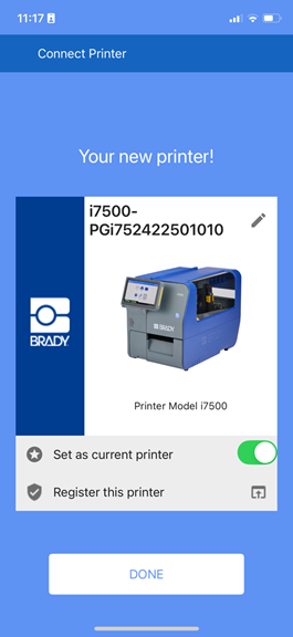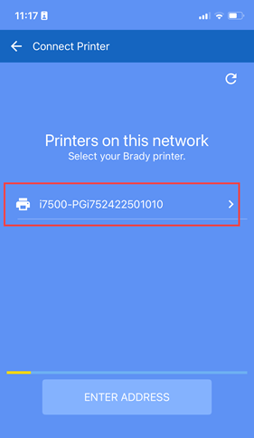 - Tap the i7500 printer. The printer will display with the serial number if the name has not been changed.